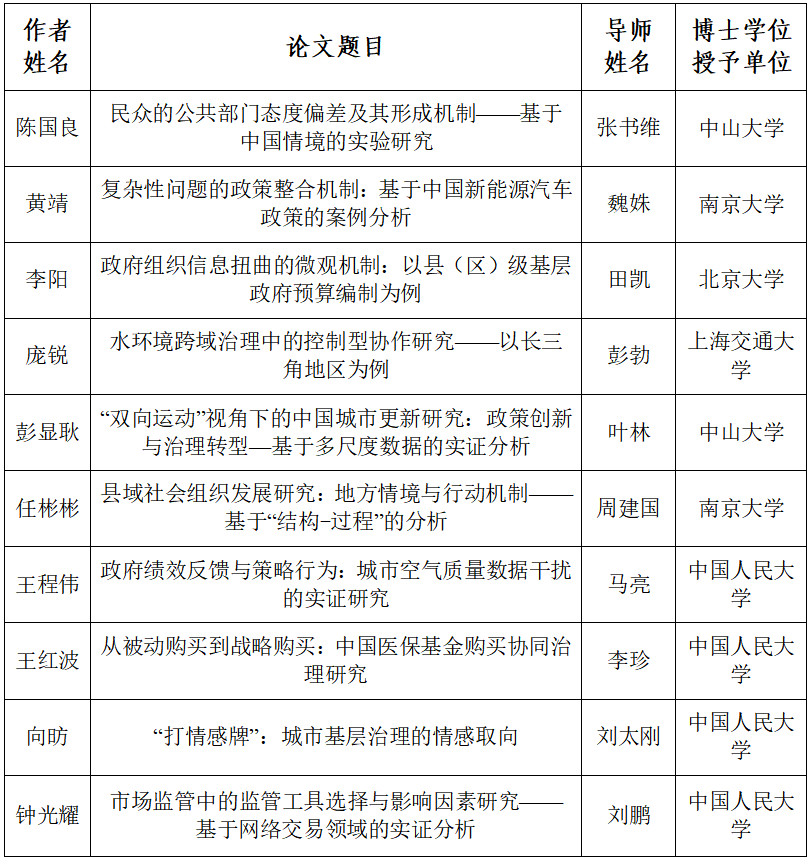 注:现场终评将从以上10篇博士论文中评选出优秀博士论文奖以及优秀博士论文奖提名奖。